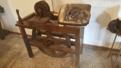 Utilizzata prima dell’elettrificazione e anche durante l’avvento del motore elettrico, perché non si riusciva a movimentare tutto con un motore di mezzo cavallo. Proveniente da artigiano ignoto.All’interno della struttura in legno è riportata una scritta a matita con il nome dell’artigiano Raffaele Dovo 105 (oppure Povo), seguita dalla scritta “La feci nel marzo 1896”.